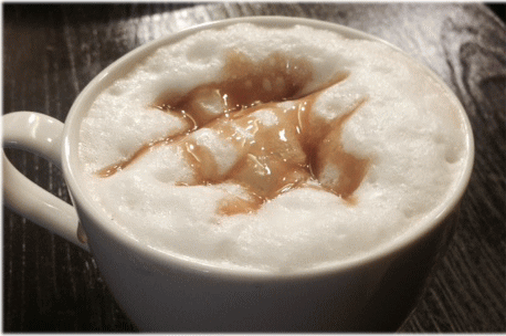 すが、当店のキャラメルラテは2種類のキャラメルをうまく使って、香